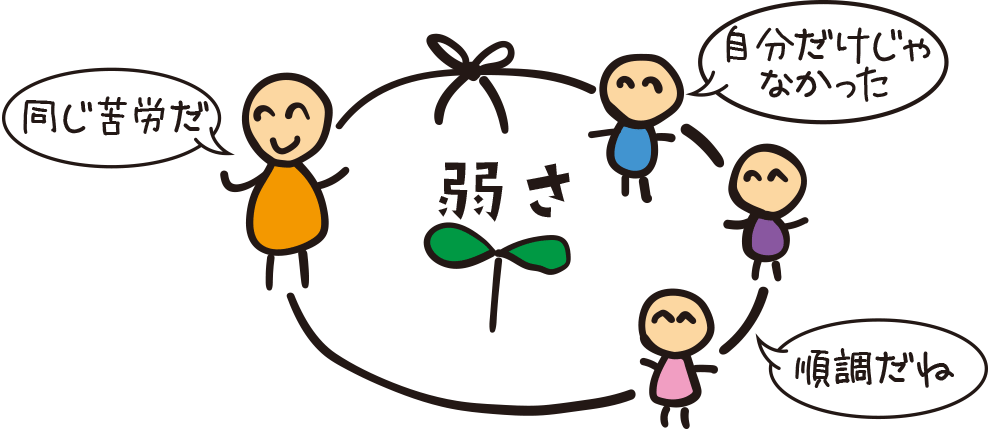 当事者研究の場で弱さの情報公開をすることは、仲間に安心感と勇気をあたえてくれます。